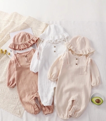 Printemps-Automne Barboteuse unisexe en coton longue longueur en gaze de couleur unie pour bébé
